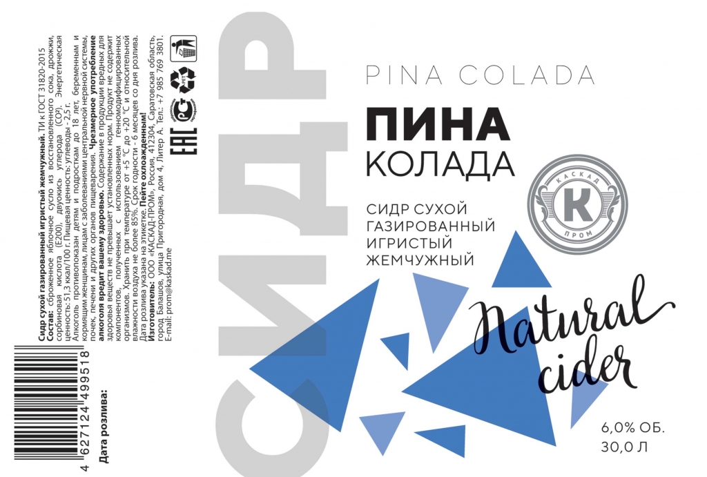 Алк. 6,0%Сидр яблочный от завода «Каскад-Пром»